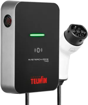 Mastercharge dispõe de um cabo de carga integrado de 5 metros de comprimento com conector Tipo 2 e é adequado tanto para instalações internas como externas em zonas abrigadas (IP54, temperatura de funcionamento -20 °C; +50 °C).