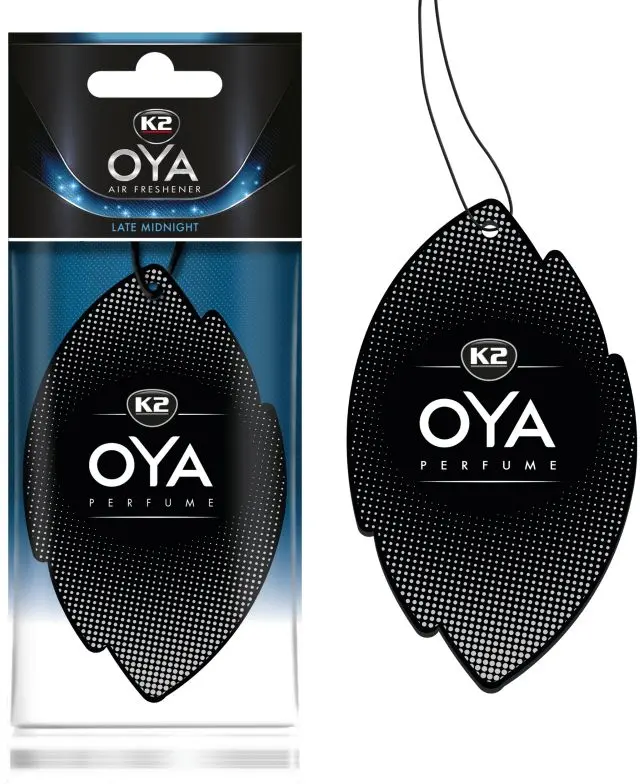 O K2 OYA é um ambientador de carro com uma fórmula original e um perfume único, criado com notas aromáticas especialmente escolhidas.