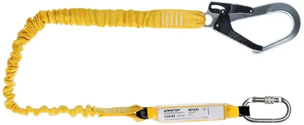 Amortecedor de energia com umacinta de poliamida elástica de 1,90 m de comprimento.
