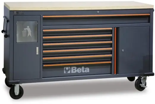 Carro de ferramentas com 7 gavetas e lixeira embutida, para combinação de mobiliário modular para oficina C45PRO