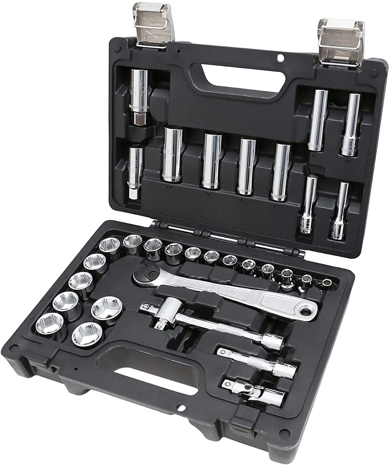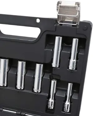 Sortido de 28 chaves de caixa sextavadas e 5 acessórios, em estojo de plástico