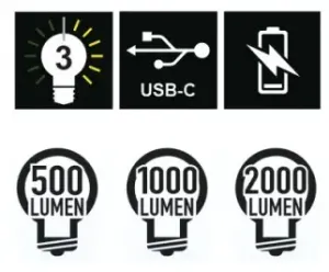 ? Emissão de luz tripla: 500/1000/2000 lumens