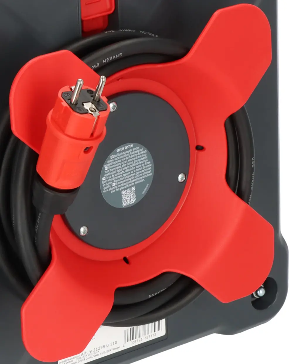 • Travão para evitar que o cabo se desenrole durante o transporte.