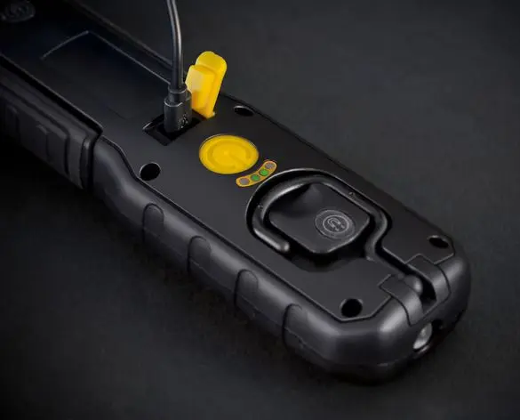 Ajustável até +/- 90 ° com ímã integrado.2 ímanes na parte posterior e gancho desdobrável para uma utilização flexível.Bateria de íons de lítio integrada 3,7 V / 2,0 Ah com indicador de carga.Interface de carregamento USB, incluindo cabo de carregamento USB.