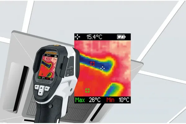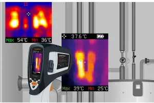 Descrição: A câmara termográfica possibilita a visualização de alterações de temperatura, perdas de energia, pontes térmicas, sobrecargas elétricas e formação de humidade. Com a imagem de infravermelhos, a imagem digital e a imagem Mix, o aplicador obtém uma apresentação flexível da área controlada. O armazenamento das imagens é realizado no cartão Micro SD substituível. O aparelho tem uma interface USB e um visor a cores TFT de alto contraste. Após um período de tempo ajustável, ocorre a desconexão automática que poupa energia.