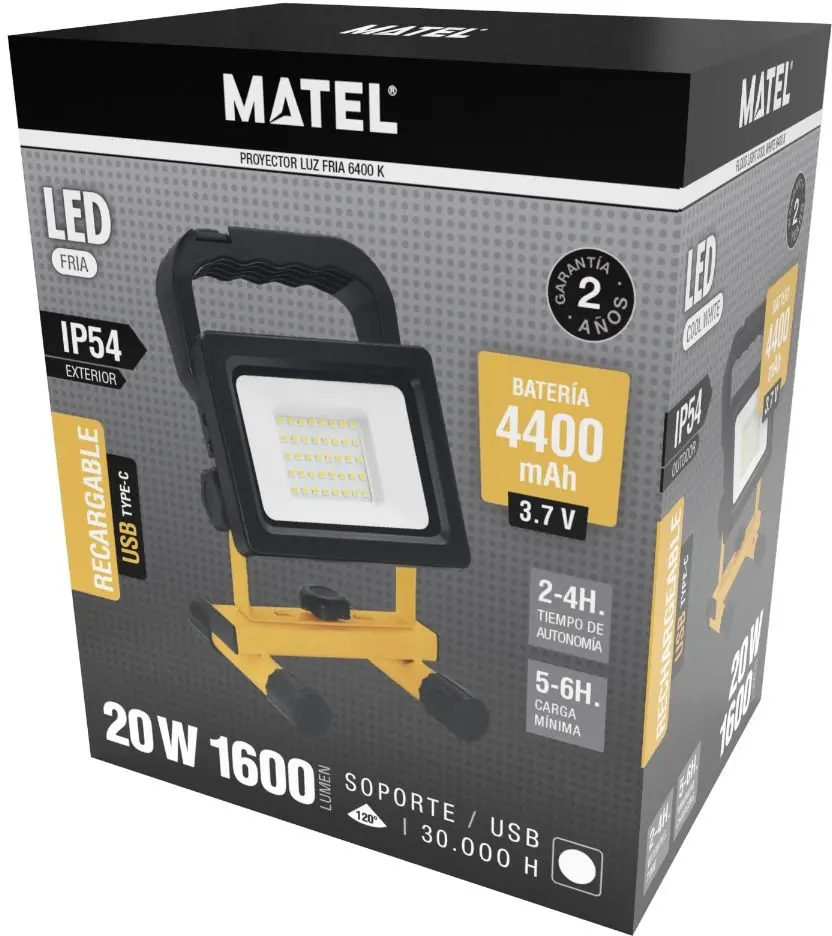 FOCO PROJETOR LED A BATERIA 20W 1600LM 4400MAH IP54 MATEL