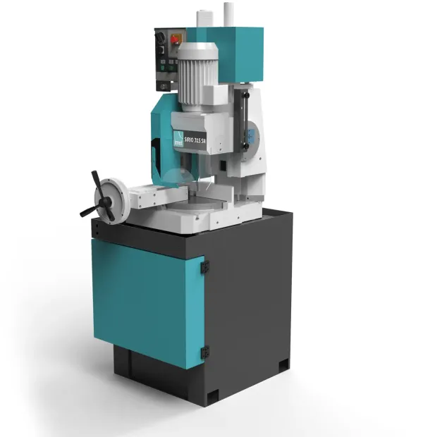 SIRIO 315 SH é a serra circular vertical semiautomática para corte de 0° a 45° à direita e de 0° a 60° à esquerda. SIRIO 315 SH é a máquina ideal para corte de perfis maciços e de aço (também com alta resistência). Versão semiautomática com funcionamento eletropneumático, controlo da velocidade de descida da cabeça e subida rápida. torno pneumático. Regulação fácil da posição de inicio/final de corte através de 2 microinterruptores.