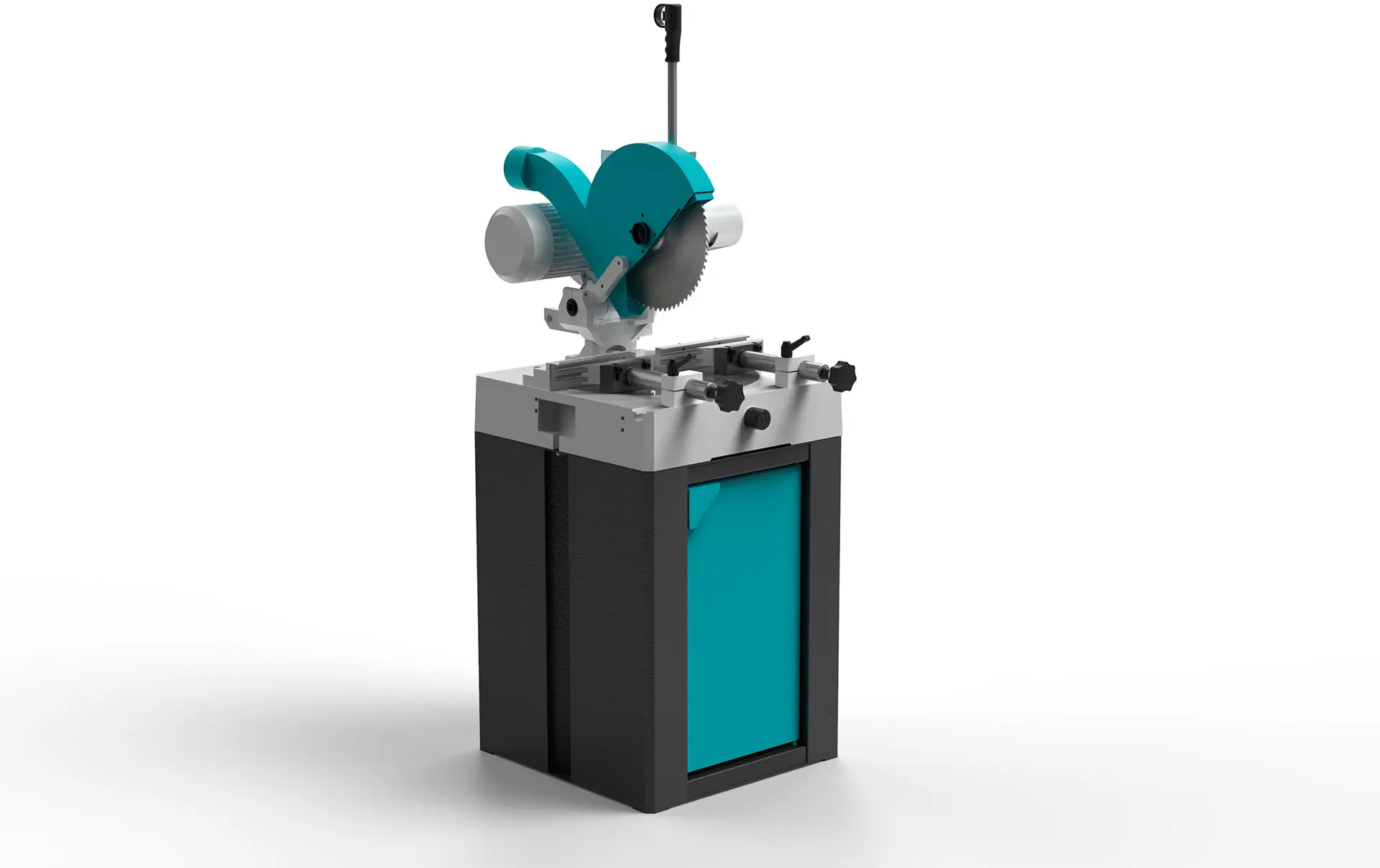 A serra circular manual IMET para corte de alumínio. VELOX 350 pode cortar de 45° à direita a 45° à esquerda e inclinado até 45° em relação ao eixo vertical. A máquina está equipada com um sistema de paradas automáticas a 0°, 15°,15°, 30° e 45° tanto para a direita como para a esquerda. Serrote manual. A cabeça inclina 45° no eixo vertical. Posicionamento rápido a 0º,15º, 30º, 45º à esquerda e direita. Volante para bloqueio da cabeça em todos os ângulos, escala graduada na mesa de trabalho. Dois tornos frontais com movimentação ao longo da mesa detrabalho. Mordentes amovíveis em alumínio. Possibilidade de ligação a dispositivo de aspiração de aparas. Base com depósito e bomba de refrigeração. Par de molas para retorno da cabeça.