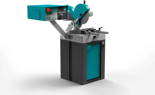 VELOX 350 SHE é a serra circular semiautomática para corte de alumínio e ligas leves. VELOX 350 SHE pode cortar de 45° à esquerda a 45° à direita e corta até 45° inclinado no eixo vertical. A serra de esquadria é a ferramenta de trabalho ideal para corte com alto nível de precisão e acabamento em perfis e alumínio maciço. Serrote semiautomático. Funcionamento eletropneumático, controlo da velocidade de descida da cabeça. Programação das funções do serrote através da consola.