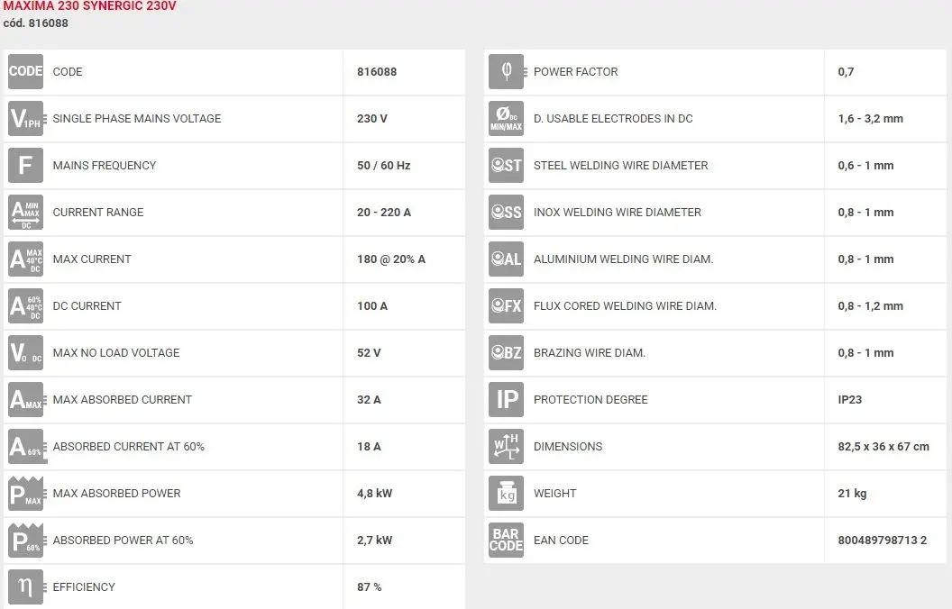 MAXIMA 230 SYNERGIC 230V