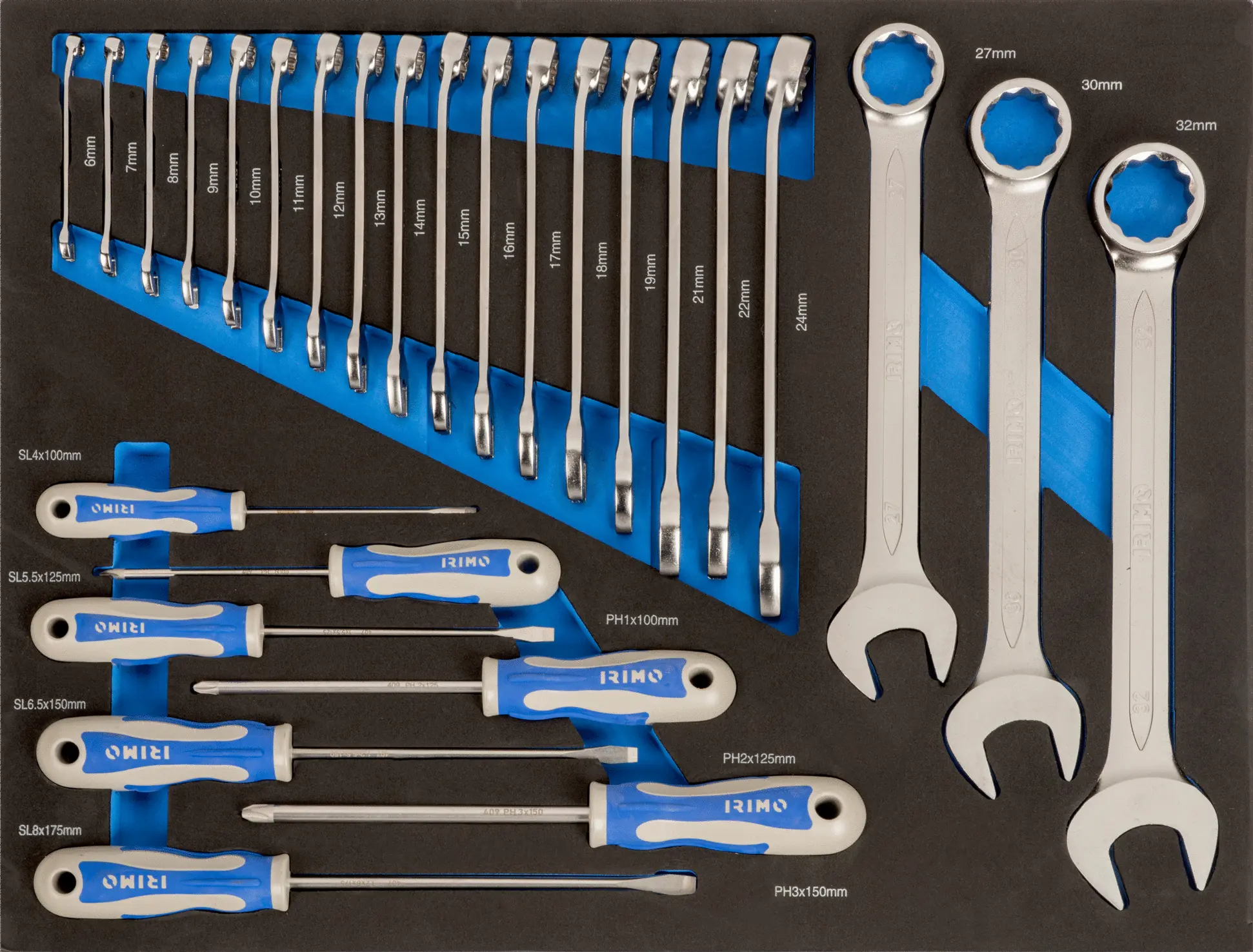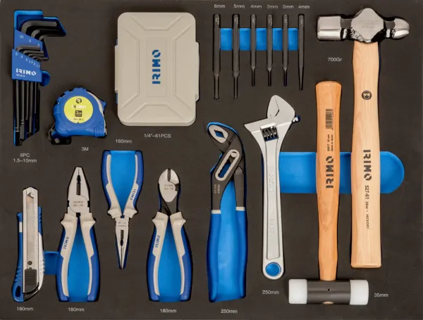 Chaves de parafusos, ferramentas de corte e martelos, chaves de bocas, conjuntos de pontas, alicates e chaves de caixa