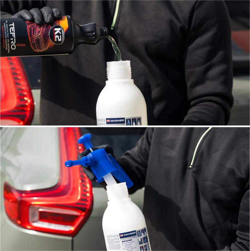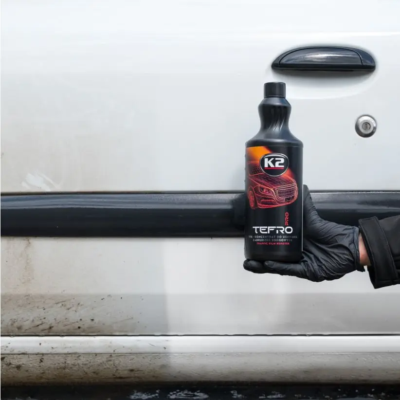 K2 TEFRO é um removedor de filme de tráfego (TFR – TRAFFIC FILM REMOVER) de última geração, desenvolvido para a remoção rápida e eficaz da sujidade mais persistente da estrada, presente na pintura, jantes de aço e liga leve, pneus e elementos plásticos da carroçaria. Graças à sua fórmula inovadora de baixa formação de espuma, reduz significativamente o tempo de trabalho, assegurando uma elevada eficiência de lavagem e uma preparação perfeita do veículo para etapas posteriores de cuidado, como a lavagem manual ou o detalhe automóvel.