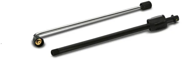 O tubo de jato angular é um tubo de jato curvo extra longo (de aproximadamente 1 m) para limpeza cómoda de áreas que são difíceis de alcançar como, por exemplo, calhas de telhado ou as partes inferiores do piso de veículos.