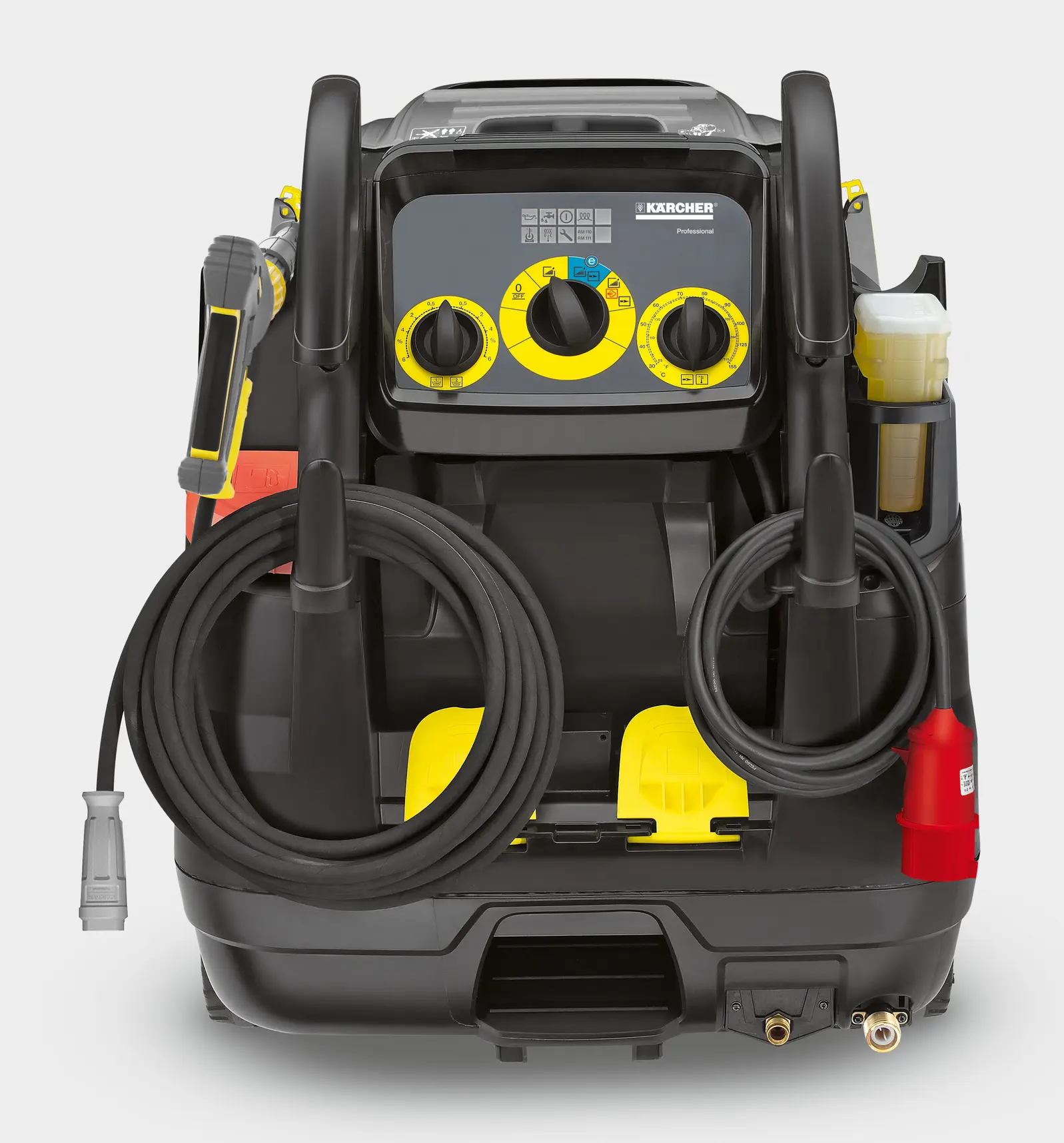 HDS 12/18-4 S: esta máquina de nível de entrada na classe Super de lavadoras de alta pressão de água quente da Kärcher é caracterizada por uma alta vazão de água, o que significa que pode até ser operada com uma segunda lança de pulverização. A pistola de gatilho EASY!Force HD usa a força de recuo do jato de alta pressão, reduzindo assim a força de retenção para o operador a zero. A lavadora de alta pressão é intuitiva para operar e transportar e, graças ao modo eco!efficiency , engenharia de queimador otimizada e dosagem precisa do agente de limpeza, também é altamente eficiente e ecologicamente correta. A tecnologia patenteada de bico, bomba axial de 3 pistões com pistões de cerâmica e o turbo soprador, entre outros recursos, garantem um desempenho de limpeza excepcional, enquanto a segurança operacional é garantida o tempo todo pelo monitoramento preciso do escapamento. O chassi robusto e resistente à corrosão também pode suportar aplicações difíceis facilmente e é construído de forma simples e conveniente. Isso permite fácil acesso a todos os componentes importantes e garante que os dados operacionais sempre possam ser recuperados facilmente.
