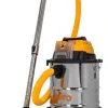 Estabilidade máxima garantida por um baixo centro de gravidade, guia para mangueira e base alargada.