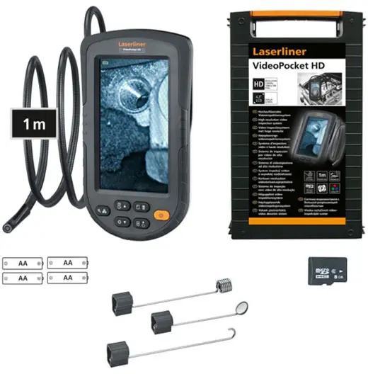 Descrição: Este sistema compacto de inspeção com vídeo de alta resolução possibilita verificações visuais detalhadas em pontos de difícil acesso, por exemplo em tubos, tetos suspensos e veículos. Durante utilização, seis LED de alta potência na unidade de câmara à prova de água permitem uma iluminação efetiva do Iluminação do objeto pode ser ajustada em dez níveis. Os detalhes podem ser detetados claramente através da função Zoom. Devido ao grande visor a cores e ao alinhamento da imagem, os resultados da inspeção são detetados idealmente. Com a função de comparação de imagens, os utilizadores podem determinar diretamente as diferenças entre a imagem ao vivo e uma imagem de referência memorizada.