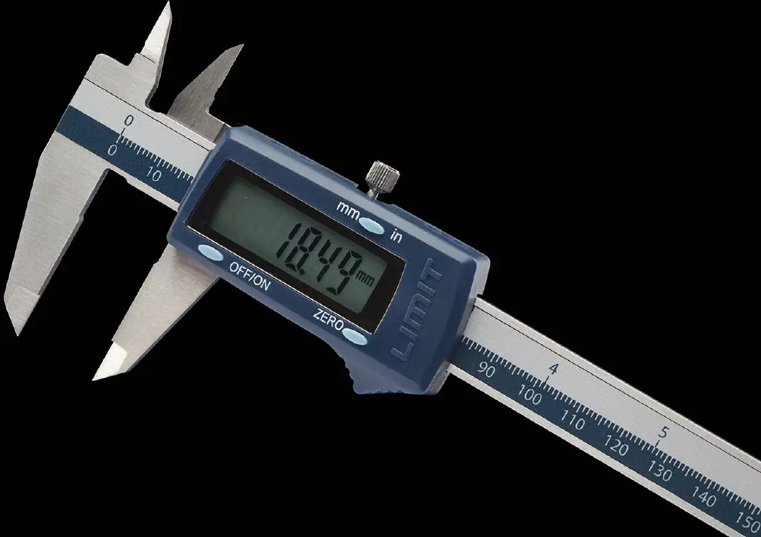 Paquímetro digital feito de aço inoxidável temperado, conforme DIN 862.