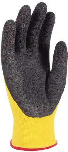 Luva com suporte de Nylon sem costuras coberto na palma e unhas com látex natural.