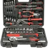 Combinação completa de alicates, chaves de fenda, roquetes, chaves de caixa, bits, chave Allen, cortador, fitas métricas, martelo, etc.