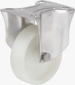 Rodízio fixo, suporte em aço estampado, zincado brilhante.