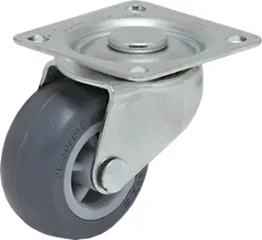 Rodízio giratório com uma pistas de esferas, suporte em aço estampado, zincado brilhante.