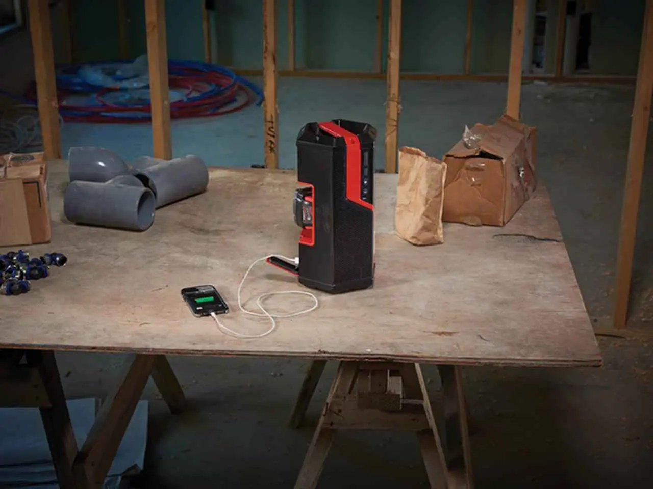 Altifalante M12™-M18™ com Bluetooth®, saída de altifalante 40W, carregador USB 2,1Ah. Fornecido em versão zero, sem baterias nem carregador