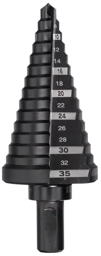 Brocas escalonadas são indicadas para furar os seguintes materiais: – Chapas de metal ferroso e não ferroso. – Tubos de cobre, bronze e aluminio. – Aço inox. – Plástico. – Espessura máxima até 4mm. Para assegurar maior durabilidade, recomendamos o uso de liquido para arrefecimento.