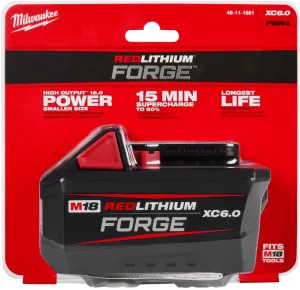 O M18™ REDLITHIUM™ FORGE™ XC6.0 oferece ALTA PRODUÇÃO de 12,0 potência em um tamanho menor, supercarga de 15 minutos até 80% e a vida útil mais longa em relação às baterias REDLITHIUM™. REDLITHIUM™ FORGE™ são as baterias mais potentes, de carregamento mais rápido e de maior duração de Milwaukee. O REDLITHUM™ FORGE™ XC6.0 oferece a mesma potência que o M18™ REDLITHIUM™ HIGH OUTPUT™ HD12.0 em um tamanho menor e design mais leve. A combinação otimizada de tamanho, peso e maior potência fornece a melhor solução para trabalhos suspensos que exigem energia e áreas de trabalho apertadas. O REDLITHIUM™ FORGE™ XC6.0 é a bateria de carregamento mais rápido de sua classe no M18, carregando em apenas 15 minutos até 80% com o novo supercarregador simultâneo de compartimento duplo M18™. Esta bateria de íon de lítio tem a vida útil mais longa, proporcionando maior número de recargas e melhor desempenho durante a vida útil da bateria. Esta solução foi projetada com carcaça resistente para maior proteção contra exposição a óleos, graxas e solventes comuns. A inteligência REDLINK™ integrada protege a bateria contra sobrecargas, evitando que você danifique suas ferramentas elétricas sem fio em situações de serviço pesado. A bateria REDLITHIUM™ FORGE™ XC6.0 é totalmente compatível com mais de 250 soluções M18.