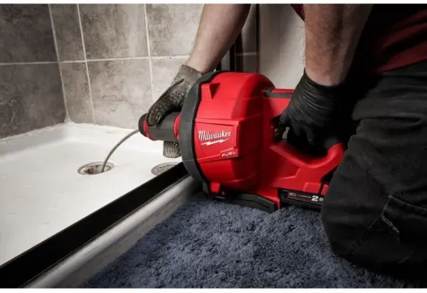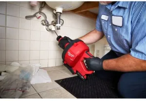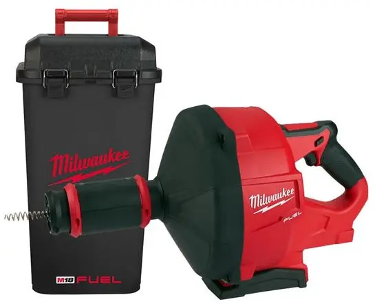 Alimentador para desentupidor M18 FUEL™, alimentação automática, espiral de 10mm, comprimento de cabo 10,6m, diâmetro máximo de tubo 75mm. Inclui 1 cabo de 10mm x 10,6m de comprimento e jogo de 5 lâminas. Fornecido em versão zero, sem baterias nem carregador, em balde de transporte