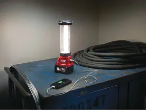 Lanterna LED M18™ TRUEVIEW™, 4 modos – 700/350/70/700 Lumens, proteção IP24, ajustável 180°-360°, conexão USB, 2 ganchos para pendurar. Fornecida em versão zero, sem baterias nem carregador