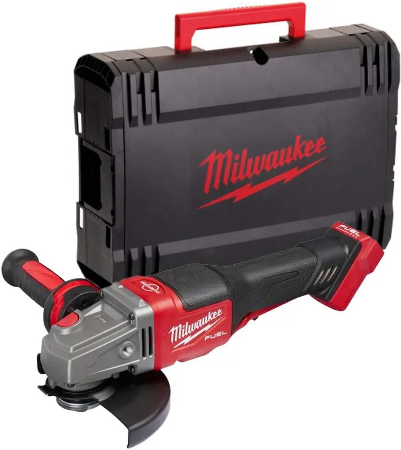 Rebarbadora de acabamentos de alto rendimento M18 FUEL™, diâmetro de disco 125mm, travão RAPIDSTOP™, 9000rpm, AVS, FIXTEC™, DMS. Fornecida em versão zero, sem baterias nem carregador, em HD-box
