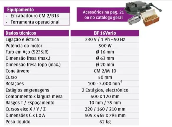 OPTIMUM ENGENHO FURAR E FREZAR C/ VARIADOR VELOCIDADE B16
