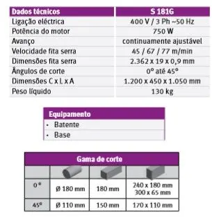 Serrote de fita para tarefas exigentes. Com correia em V e 4 velocidades