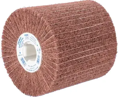Feito de lamelas radialmente dispostas de material abrasivo não tecido. Há também tecido abrasivo entre as lamelas.