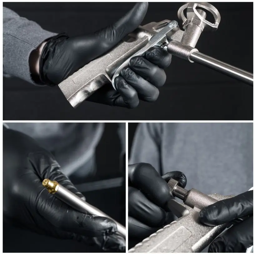 – Metal longo gatilho melhora a precisão da dosagem de espuma – agulha de aço – corpo – aplicador de aço resistente a ácidos