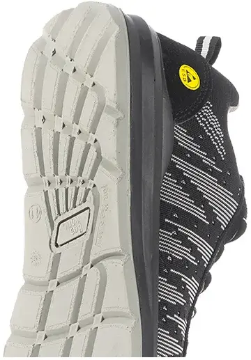 Biqueira: Não metálica de fibra de vidro; amagnética e atérmica; resistência ao impacto 200J e compressão 15kN. Palmilha antiperfuração: Não metálica PS; flexível; resistente 1100N. Palmilha comfort: Termoformagem de PU; amovível; antiestática ESD; antibacteriana e fungicida. SOLE: Poliuretano antiestático de dupla densidade; resistente a hidrocarbonetos; resistência ao deslizamento SR. Mondopoint 12.