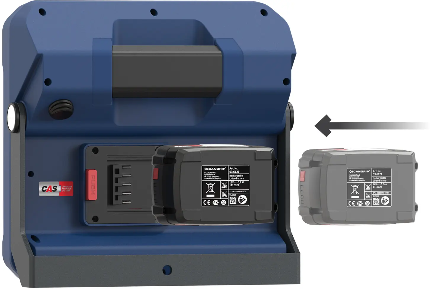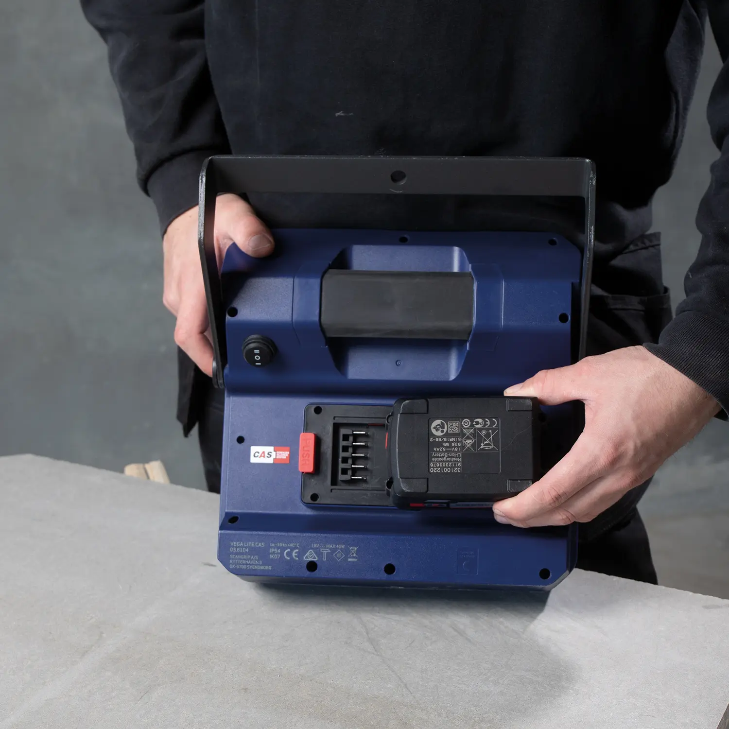 Possui 2 níveis de saída de luz (50-100%) o que permite ajustar a luz de acordo com a tarefa de trabalho. O VEGA LITE CAS é compatível com o sistema de bateria METABO/CAS 18V (sistema de aliança sem fio) e, ao mesmo tempo, o SCANGRIP POWER SUPPLY pode ser usado para alimentação direta, proporcionando disponibilidade ilimitada de luz.