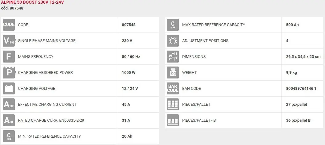 TELWIN CARREGADOR DE BATERIAS ALPINE 50 BOOST 12/24V