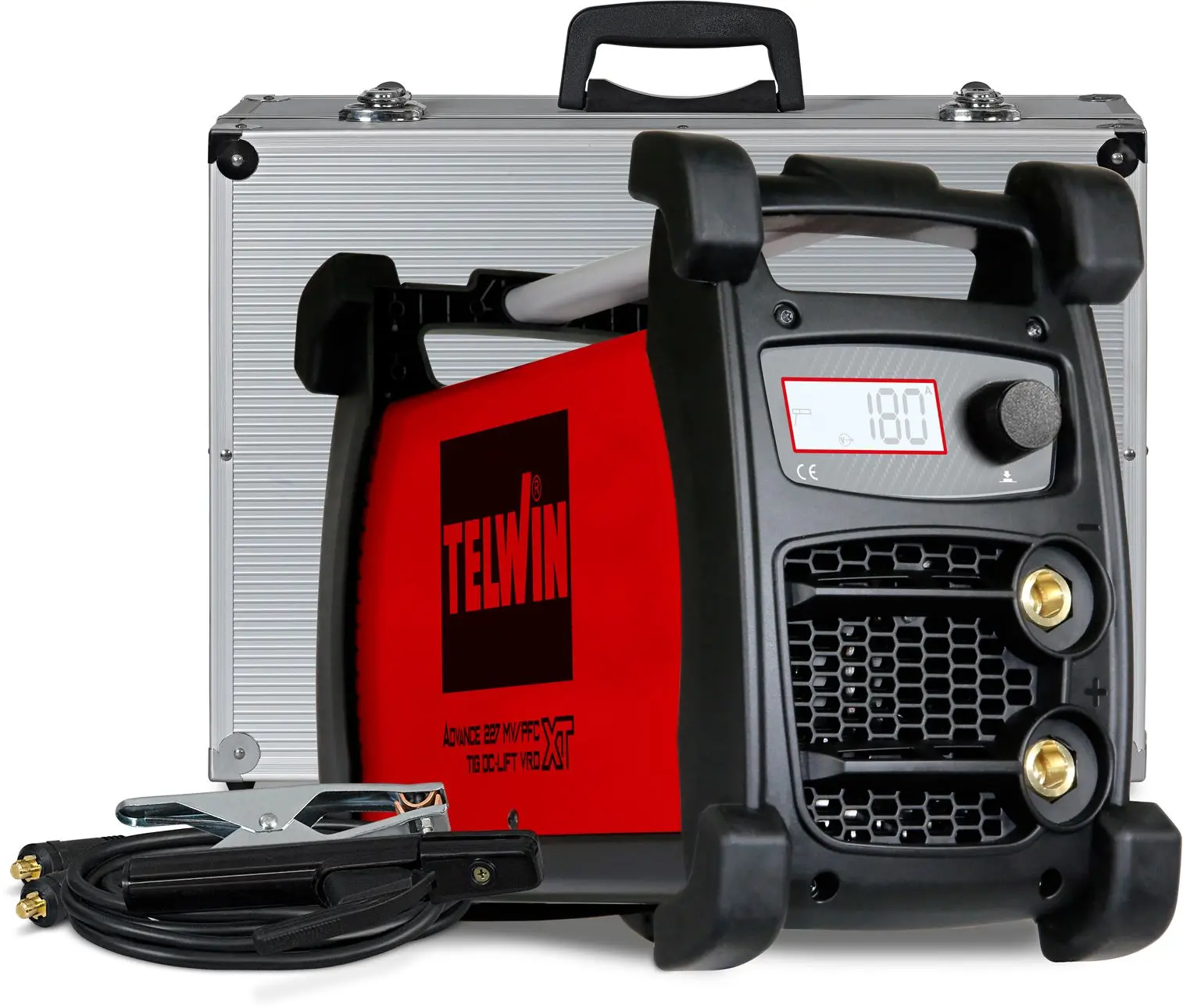 Fornecido com acessórios de soldadura MMA e estojo de transporte em alumínio