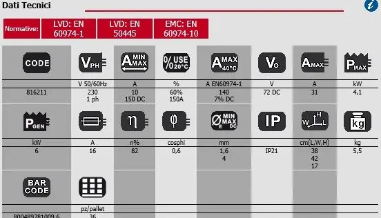 – Diâmetro electrodo MMA: 1,6-4 mm