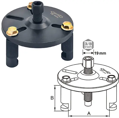 Os braços de tração ajustáveis permitem a remoção da roda dentada da árvore de cames numa ampla variedade de motores