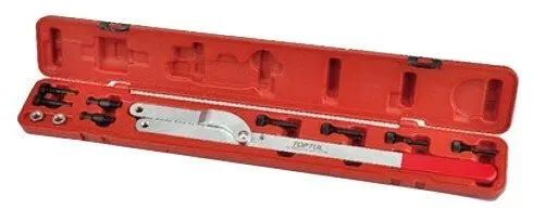 Desenhado para rodar e fixar na posição as polias da árvore de cames e da bomba injetora comprimento total 520mm inclui 4 pares intermutáveis: Ø6, Ø8, Ø10, Ø16mm