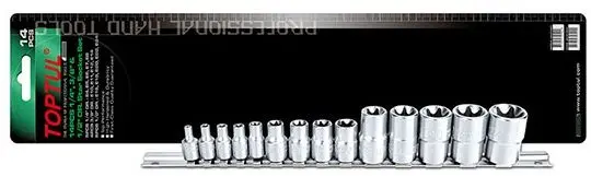 TOPTUL JOGO CHAVES DE CAIXA TORX 1/4″, 3/8″ E 1/2″ 14PÇS