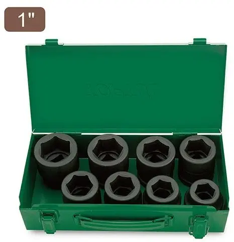 – 8 chaves de impacto 1″ 24,27,30,32,33,36,38 e 41 mm