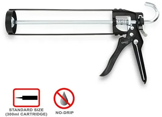 • Pistola de mástique com estrutura em aço gancho em escada 9”