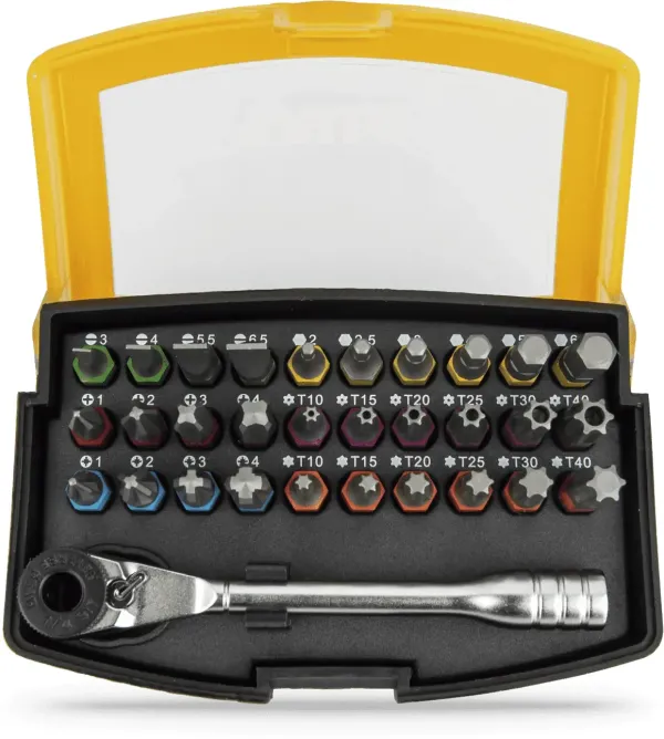 – 6 bits torx com segredo: T10, T15, T20, T25, T30 e T40;