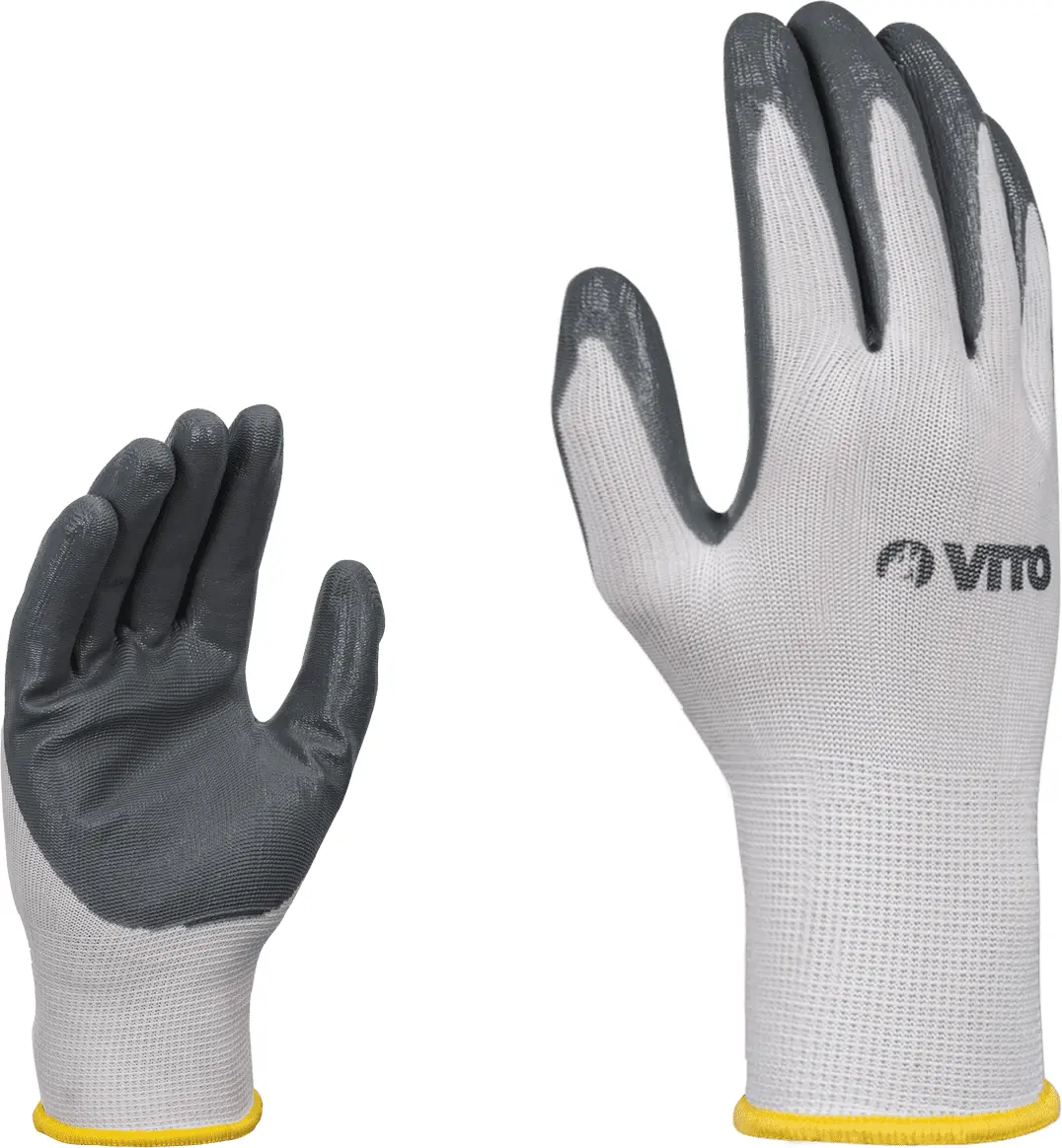 Suporte em poliester revestido em nitrilo na palma e dedos.