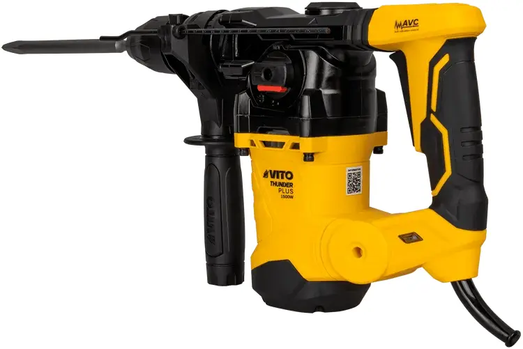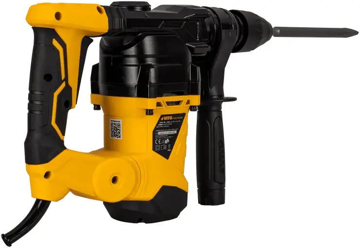 Martelo Perfurador Demolidor 1500W da VITO (VIMPDP1500) com três funções desde perfuração, perfuração com impacto (alvenaria), função demolição (cinzelagem) e ainda ajuste da posição do cinzel.