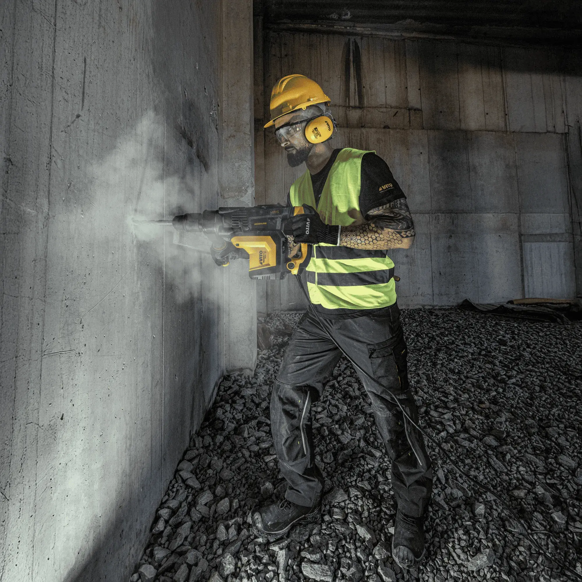 Com 15 Joules de energia de impacto esta ferramenta é ideal para projetos de perfuração pesada e demolição em superfícies como: alvenaria, betão e pedra.