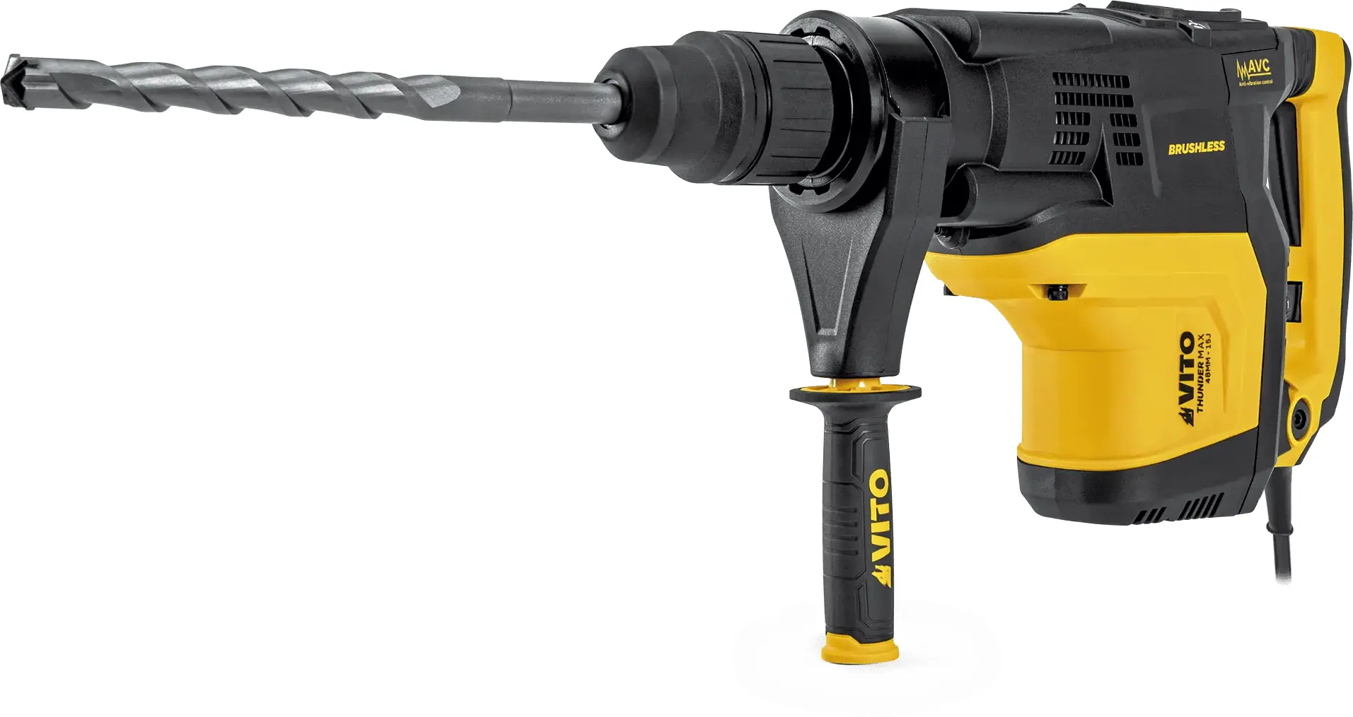 O Martelo Perfurador Demolidor 1500W da VITO (VIMPDBM1048) é equipado com um motor brushless (sem escovas) de 1500W, oferecendo eficiência e durabilidade superiores.